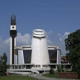 Ensuite, nous parcourons une courte distance jusqu'au Sanctuaire de Saint Jean-Paul II, dédié à la vie et à l'héritage du Pape bien-aimé. Le sanctuaire fait partie du centre "N'ayez pas peur ! qui comprend une église, un musée et diverses expositions détaillant la vie, les enseignements et les moments importants du pontificat de Jean-Paul II. L'architecture mêle modernité et éléments traditionnels, créant ainsi un espace qui honore la mémoire du pape et incite les visiteurs à réfléchir à sa contribution à l'Église et au monde.