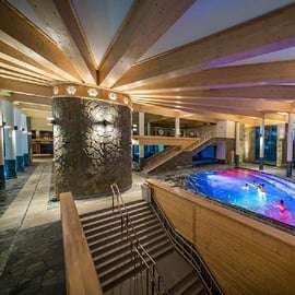 Après ces instants de pur plaisir sur les pistes, direction Chochołów ! Détente et bien-être vous attendent aux thermes, où vous pourrez vous relaxer dans des eaux dont la température oscille agréablement entre 30 et 38 degrés Celsius. Piscines intérieures et extérieures, bains bouillonnants, sauna... Choisissez votre moment de détente idéal. Après quelques heures de pure relaxation, votre chauffeur vous reconduira confortablement à votre hôtel à Cracovie.