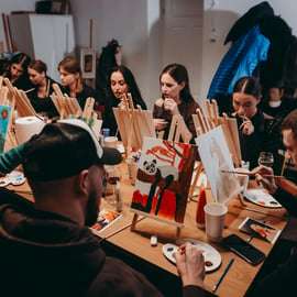Apprenez des techniques de peinture simples, jouez avec les couleurs et les textures, et créez votre propre œuvre d'art à emporter chez vous comme souvenir unique de Cracovie. L'atmosphère est ludique, conviviale et artistique, idéale pour les couples, les amis, les étudiants Erasmus ou les voyageurs solitaires à la recherche d'une expérience nouvelle et mémorable.