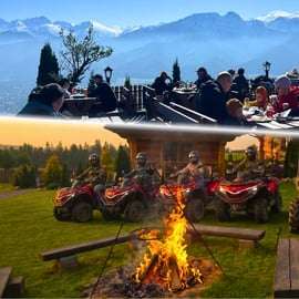 Dans l'après-midi, détendez-vous autour d'un feu de montagne traditionnel, et oui, il est déjà inclus dans l'expérience. Réchauffez-vous au coin du feu avec des boissons chaudes à volonté et des en-cas régionaux, tels que des saucisses grillées ou du fromage local. C'est un moment convivial et chaleureux où les voyageurs peuvent véritablement ressentir le mode de vie montagnard.