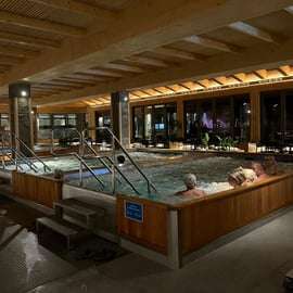 Relaxation garantie dans l'une des 8 piscines thermales intérieures, toutes maintenues à une température idéale de 36°C. Besoin de plus d'espace ? Les piscines extérieures, également à 36°C, vous attendent, avec leurs eaux salées tonifiantes.