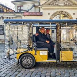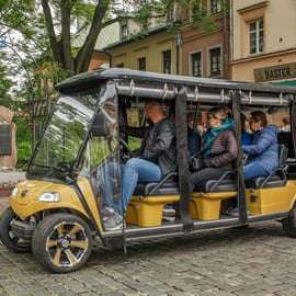 Votre expérience débute au lieu de rendez-vous, où vous embarquerez à bord d'une voiturette de golf confortable et chauffée, équipée de commentaires audio. Détendez-vous en vous déplaçant en douceur à travers certains des quartiers les plus pittoresques de Cracovie.