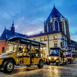 Voyez tous les sites de la vieille ville de Cracovie, y compris le Planty, la place principale et le Wawel. Parcourez ses belles rues en voiturette de golf électrique, en profitant des commentaires audio au fur et à mesure.