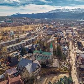 Promenez-vous le long de Krupówki, la rue principale animée de Zakopane, où vous pourrez vous mêler à la population locale et découvrir la vie du village tout en cherchant des souvenirs uniques. Prenez le funiculaire jusqu'au mont Gubałówka et imprégnez-vous de la beauté naturelle environnante. Depuis le sommet, profitez d'une vue imprenable sur les montagnes Tatra. Ne manquez pas le célèbre tremplin de saut à ski, qui accueille le prestigieux Grand Prix de saut à ski.