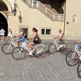 Participez à notre visite à vélo de 2 heures dans le quartier juif de Cracovie, Kazimierz, et découvrez l'un des quartiers les plus pittoresques de la ville de manière active et ludique. En parcourant à vélo les charmantes ruelles et les places animées, vous découvrirez des siècles d'histoire, de culture et de traditions juives. Votre guide vous fera découvrir de magnifiques synagogues, l'ancien cimetière juif et la rue historique Szeroka, qui était autrefois le cœur de la vie juive. En chemin, vous entendrez également des histoires fascinantes sur les personnes qui ont vécu ici, des marchands ordinaires aux artistes et érudits célèbres. La visite comprend la découverte de sites liés à la Seconde Guerre mondiale et à la liste de Schindler, vous permettant ainsi de mieux comprendre le passé du quartier. Grâce à un vélo confortable et à un guide de la région expérimenté, vous couvrirez plus de terrain en moins de temps, tout en profitant de l'atmosphère détendue de Kazimierz. Idéale pour les passionnés d'histoire et les voyageurs actifs, cette visite à vélo est un excellent moyen d'explorer l'un des quartiers les plus uniques de Cracovie.